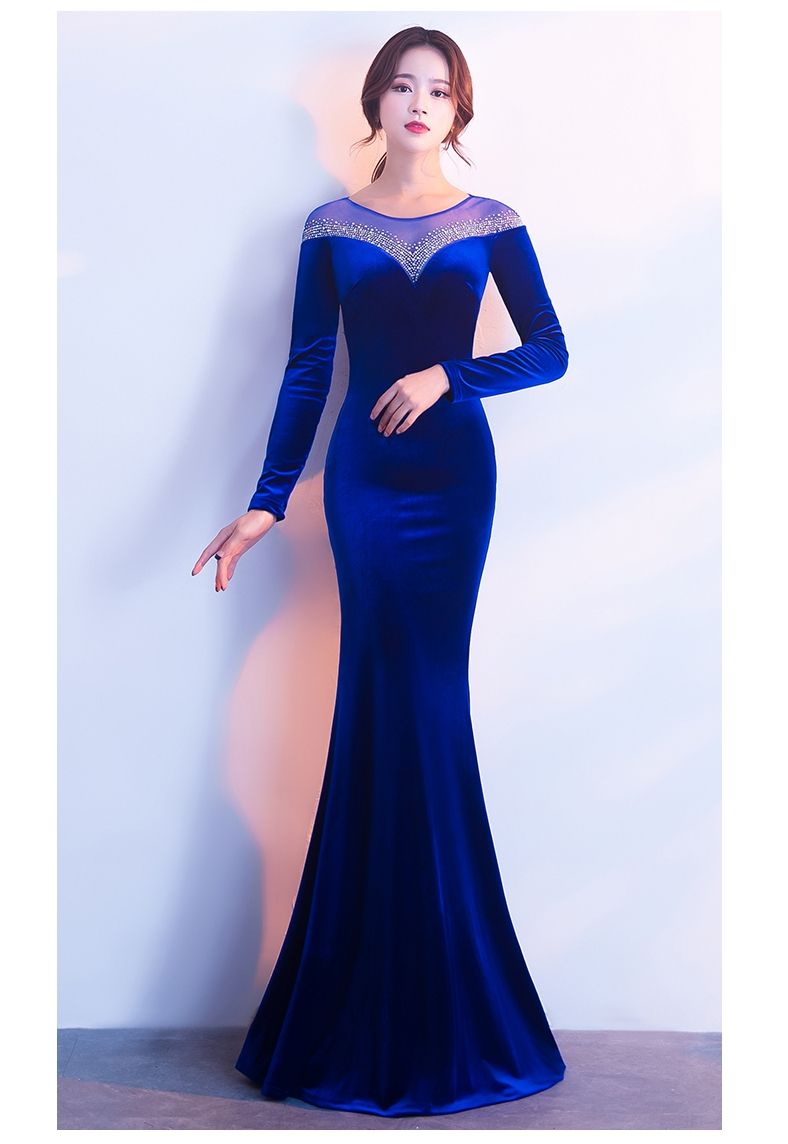 الجديد نوبل شتاء طويل مثير حورية البحر الأزرق الأنيق فساتين السهرة المخملية ذيل السمكة الرقبة حزب بأكمام طويلة الرسن حفلة موسيقية فساتين Dh19 2020 من Sherri Hill Dresses 635 06ر س موبايل Dhgate